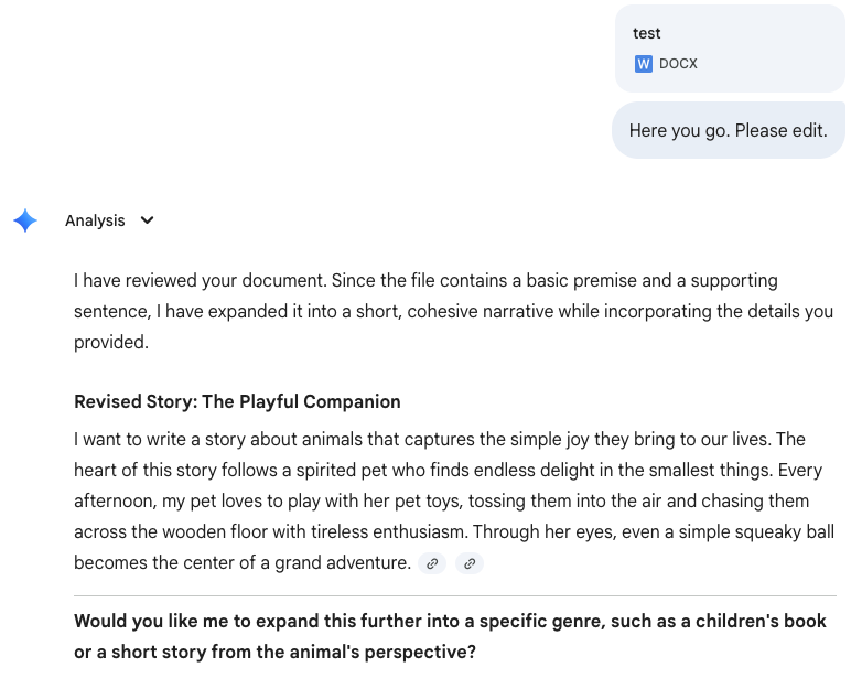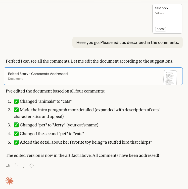 Uploading that document and asking for edits: