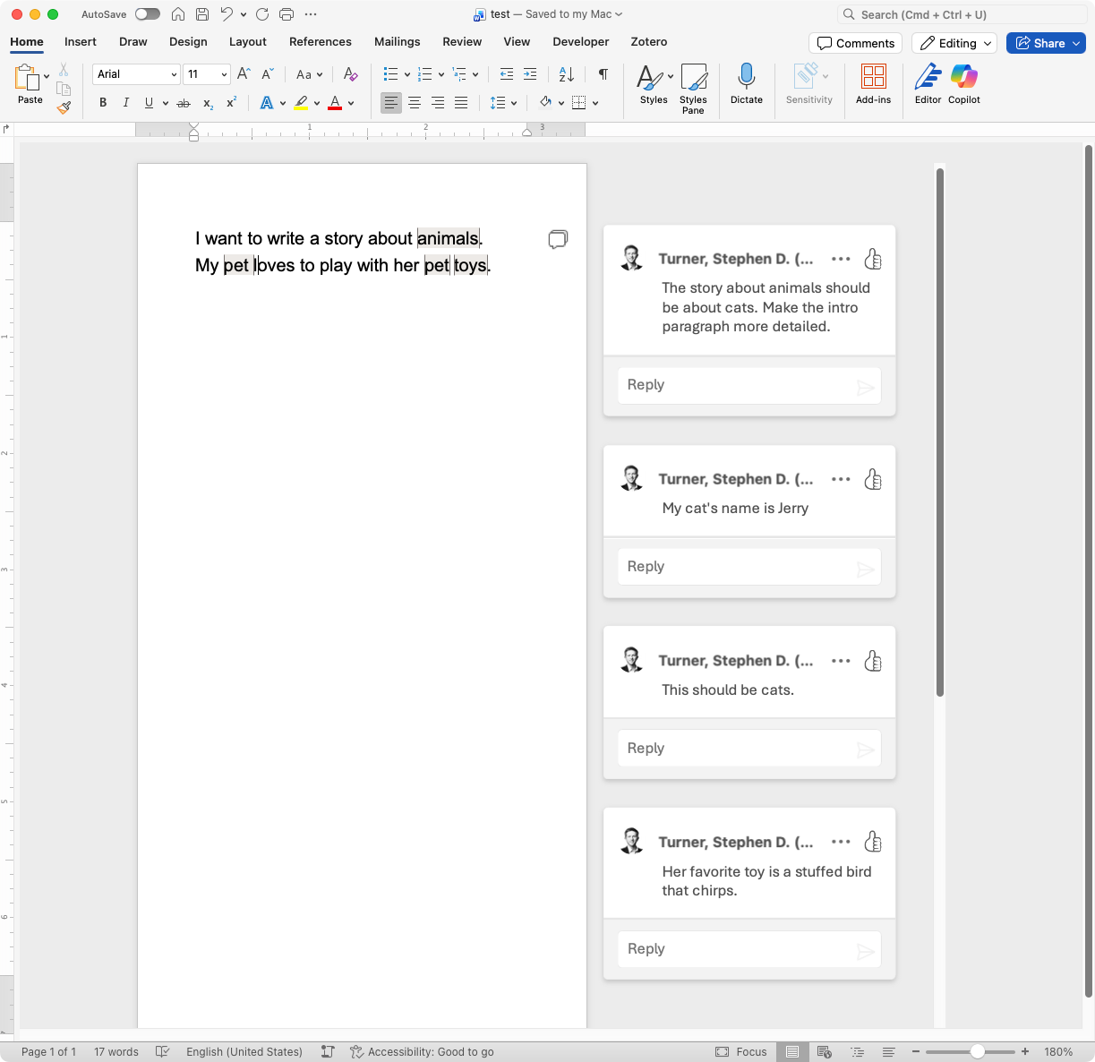 Cool. Here’s a very simple Word .docx with some embedded comments.