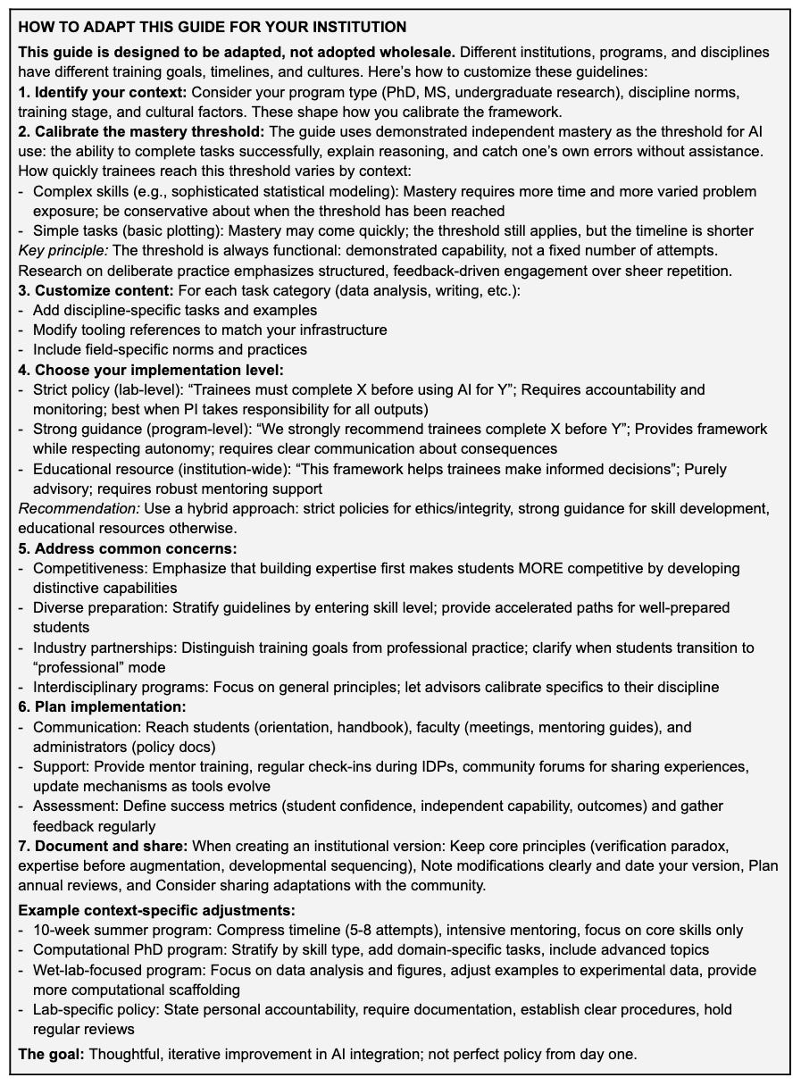 Arjun’s framing in this guide is useful because it moves past the stale (and IMHO, boring) debate between AI enthusiasm and AI skepticism. The question isn’t whether trainees should use AI. They will, and they should. That ship has sailed. The question is when, and the answer depends on where they are in their expertise development. The same tool that makes an experienced researcher more productive can prevent a trainee from becoming one. Getting the sequencing right is one of the more consequential pedagogical challenges facing graduate education right now, and Krishnan’s framework gives programs a principled basis for navigating it.