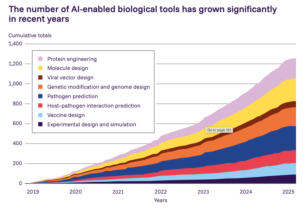 The challenge has become more acute: 23% of the highest-performing biological AI tools now have high misuse potential, and 61.5% of these are fully open source. Meanwhile, only 3% of 375 surveyed biological AI tools have any safeguards at all. The number of AI-enabled biological tools has grown exponentially, with natural language interfaces making sophisticated capabilities accessible to users without specialist expertise. This creates a difficult choice for policymakers: the same tools accelerating beneficial medical research can be repurposed for harm. And unlike large language models, most biological AI tools are already open-weight, making meaningful restrictions nearly impossible without hampering legitimate research.