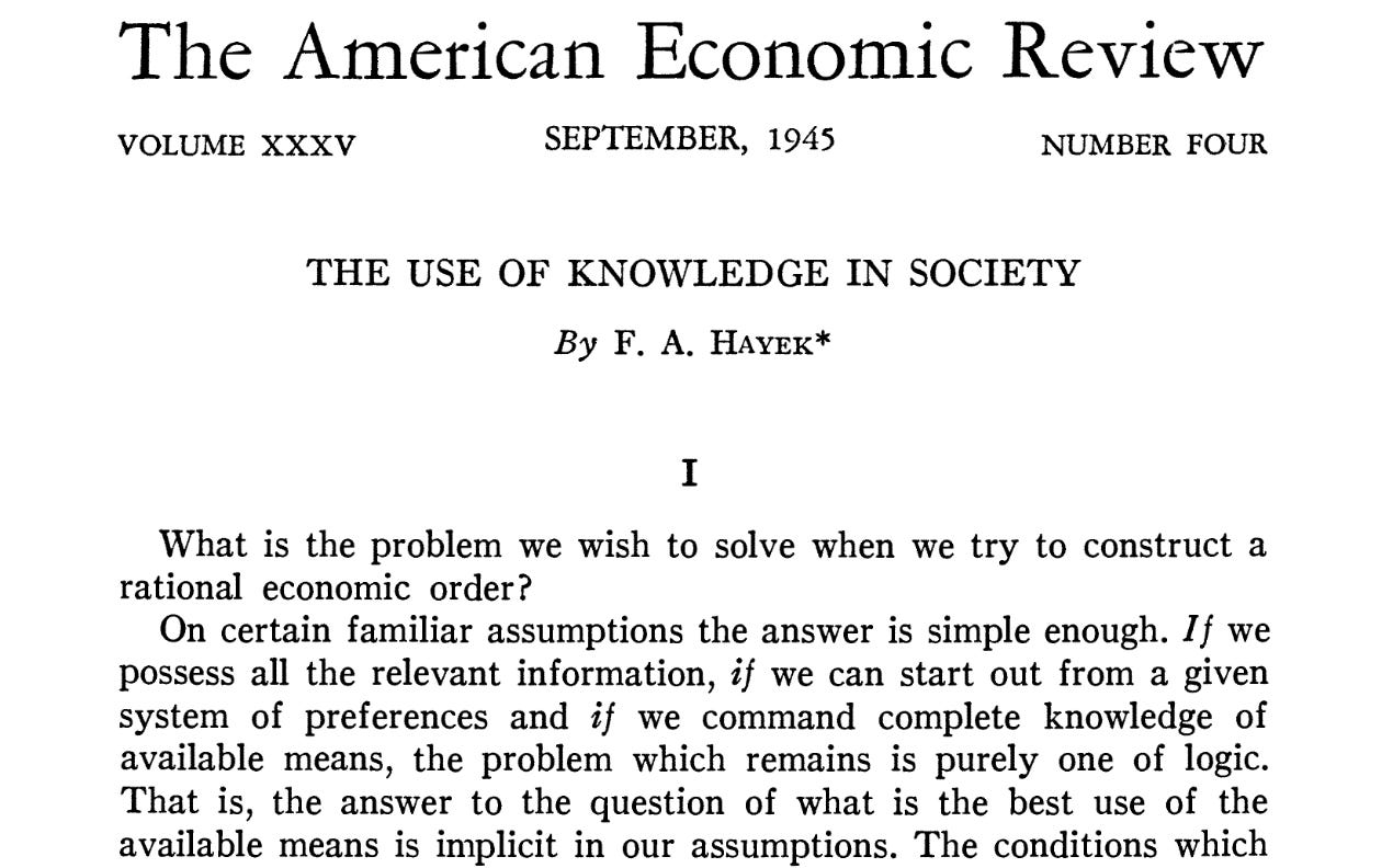 The idea of tacit knowledge has two key 20th-century lineages. In economics, Friedrich von Hayek used it to explain how buyers and sellers act on local, situation-specific understanding that often can’t be fully put into words (von Hayek, 1945). The combined effect of those private judgments shows up in market prices, which effectively encode information that no single person can completely articulate.