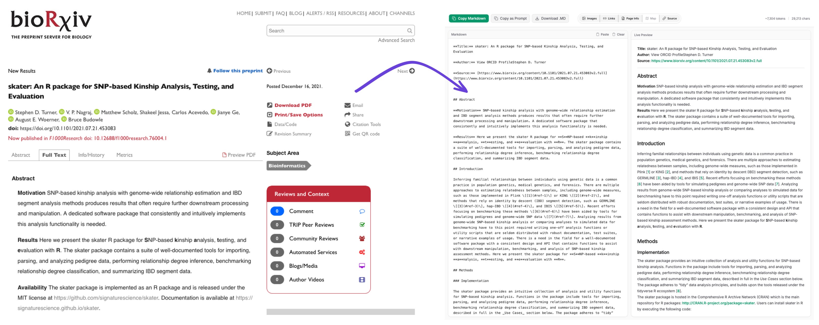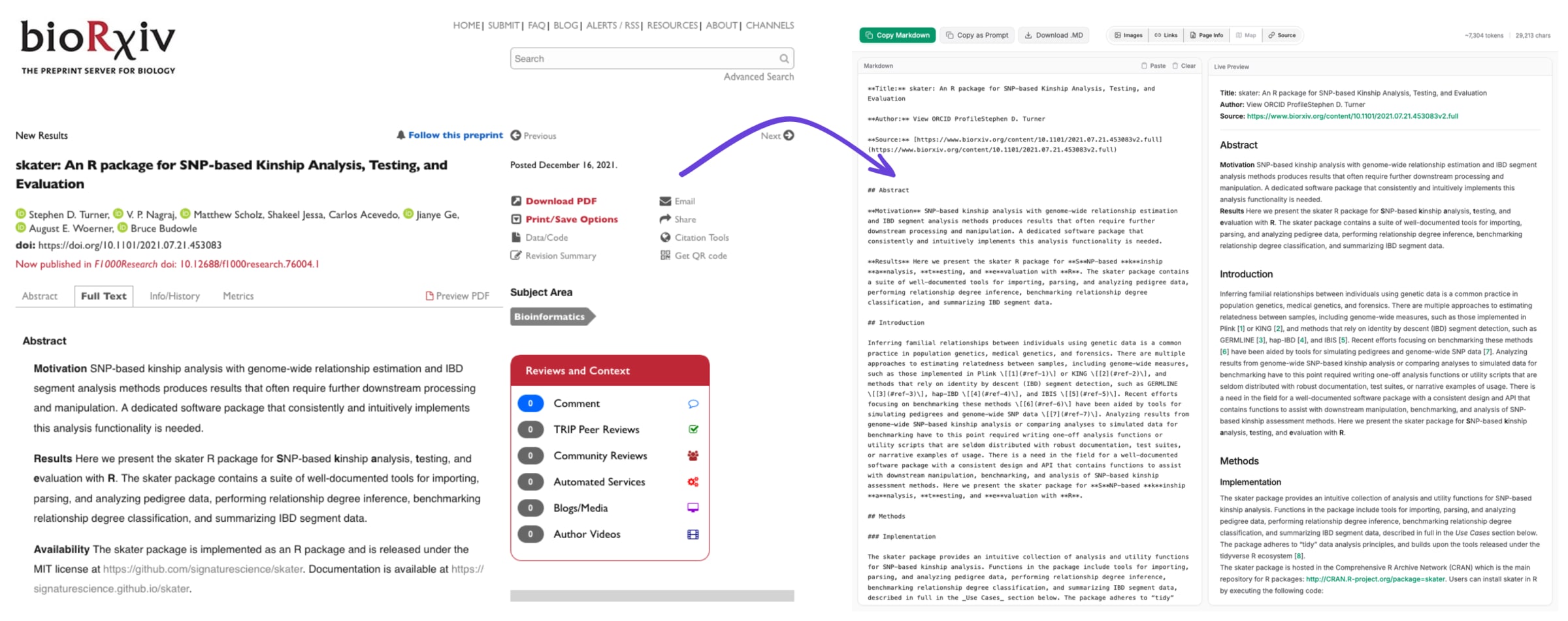 markdownme: Shameless self promotion here. I published a browser extension that instantly turns any page into markdown with a keyboard shortcut (Alt+M by default). You get an editor window and a preview. You can toggle on/off things like a page map, images, links, page metadata. You can install it from the .xpi file on the GitHub release page, or hopefully soon from the Firefox add-on store (the extension is still under review). If you’re using Chrome (why?) see the credits on the GitHub page and use the upstream maintained by someone else. Conversion on most typical pages takes milliseconds.