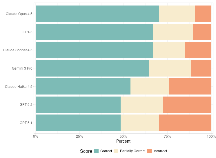 Update: Which LLM writes the best R code? Interestingly, GPT-5.2 underperformed OpenAI’s own GPT-5, as well as Gemini 3 and all the Claude models.