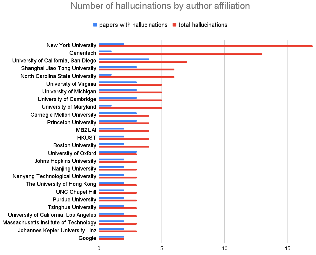 NeurIPS, one of the top AI conferences, has seen them double in five years. ICLR, the leading conference for deep learning, has also experienced an increase, and it appears to include a fair amount of slop: An LLM detection start-up analyzed submissions for its upcoming meeting in Brazil and found more than 50 that included hallucinated citations. Most had not been caught during peer review.