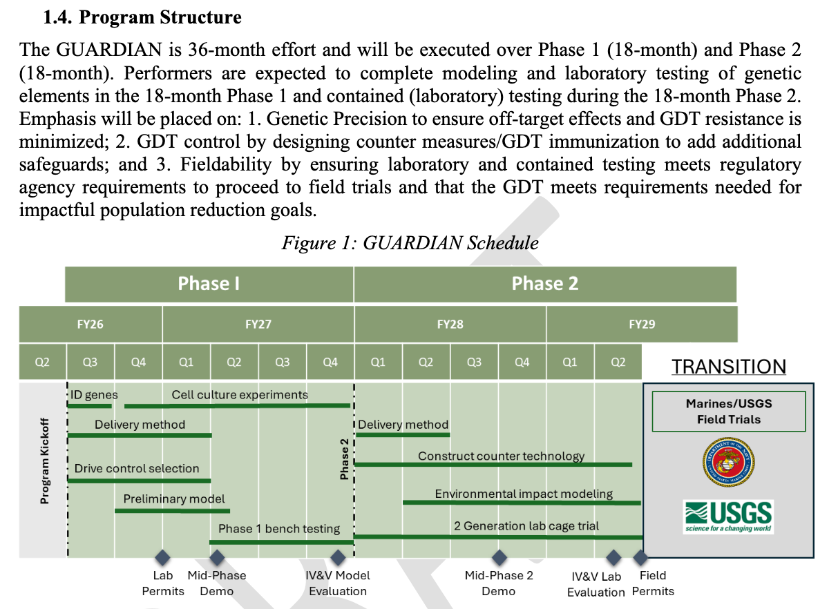Speaking of Colossal, I got to spend two years working with some of the most talented genome engineers I’ve ever met. I also got to work with Colossal Foundation’s conservation team, and I led an effort to write a review on de-extinction technology and its application to conservation. In this review we touched on using gene drive technologies for invasive species control. I’m grateful for the time I got to spend at Colossal with such talented scientists, and when I saw the announcement about DARPA’s GUARDIAN program, I immediately signed up to present at the industry day this week. The goal of GUARDIAN (Genetic Utilization for Advanced Regulation and Defense of Indigenous And Native species) is to develop gene drives to eradicate invasive species, starting with the brown tree snake (BTS) on Guam. It’s a super interesting and impactful program, both economically and from the conservation perspective. I’m looking forward to seeing this get off the ground, and hope to be a part of it.