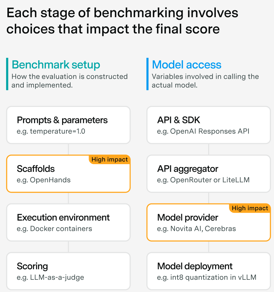 Florian Brand and JS Denain at Epoch AI: Why benchmarking is hard. Running benchmarks involves many moving parts, each of which can influence the final score. The two most impactful components are scaffolds and API providers.