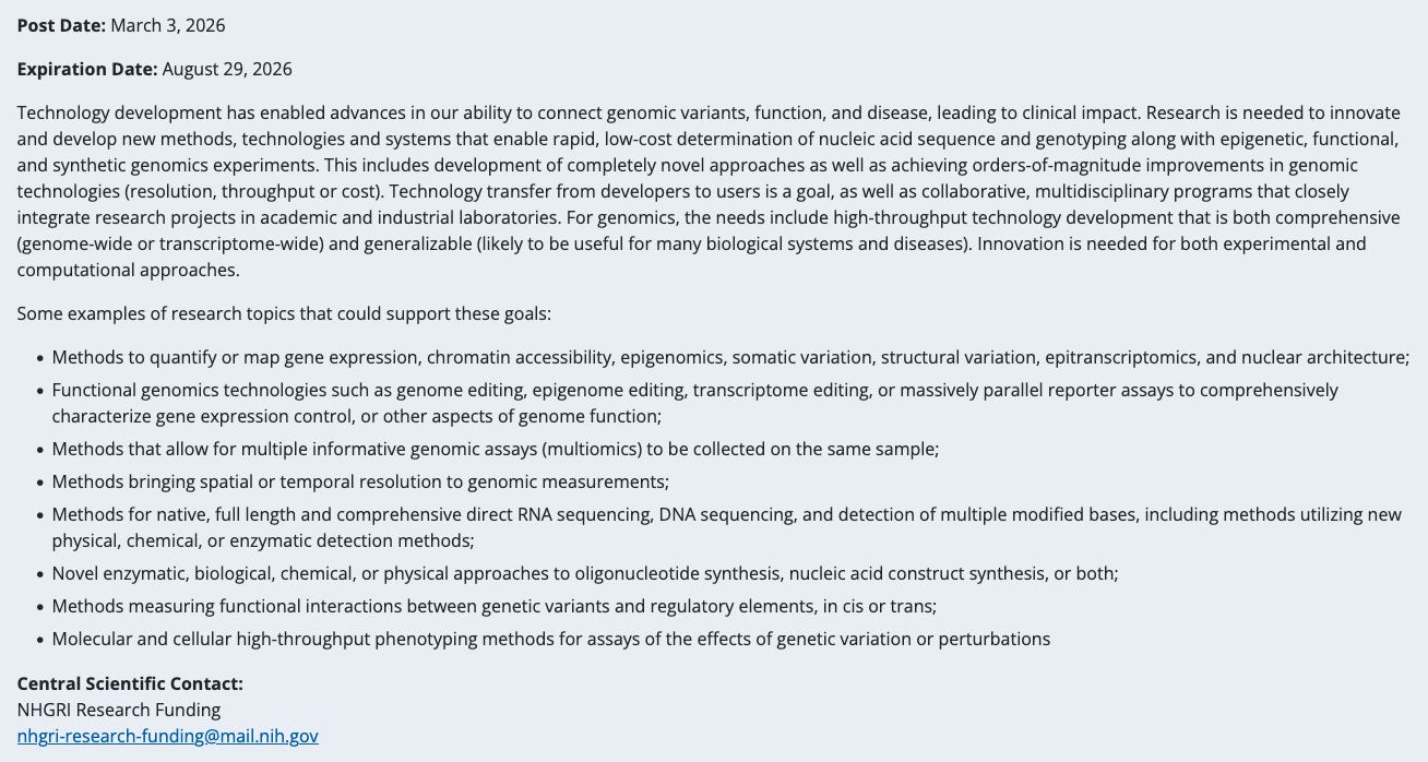 New NIH Highlighted Topic: Technology Development for Genomics.