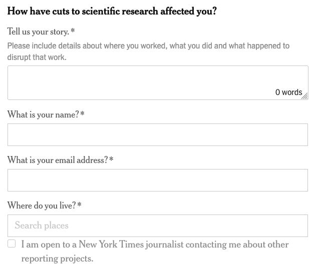 Lost Science is a new NYT series of accounts from scientists who have lost their jobs or funding after cuts by the Trump administration. The first interview by Carl Zimmer: She Studied How Logging Affects Pollinators: Kim Ballare was a research ecologist with the U.S. Forest Service until her federal grant “got snatched away.”