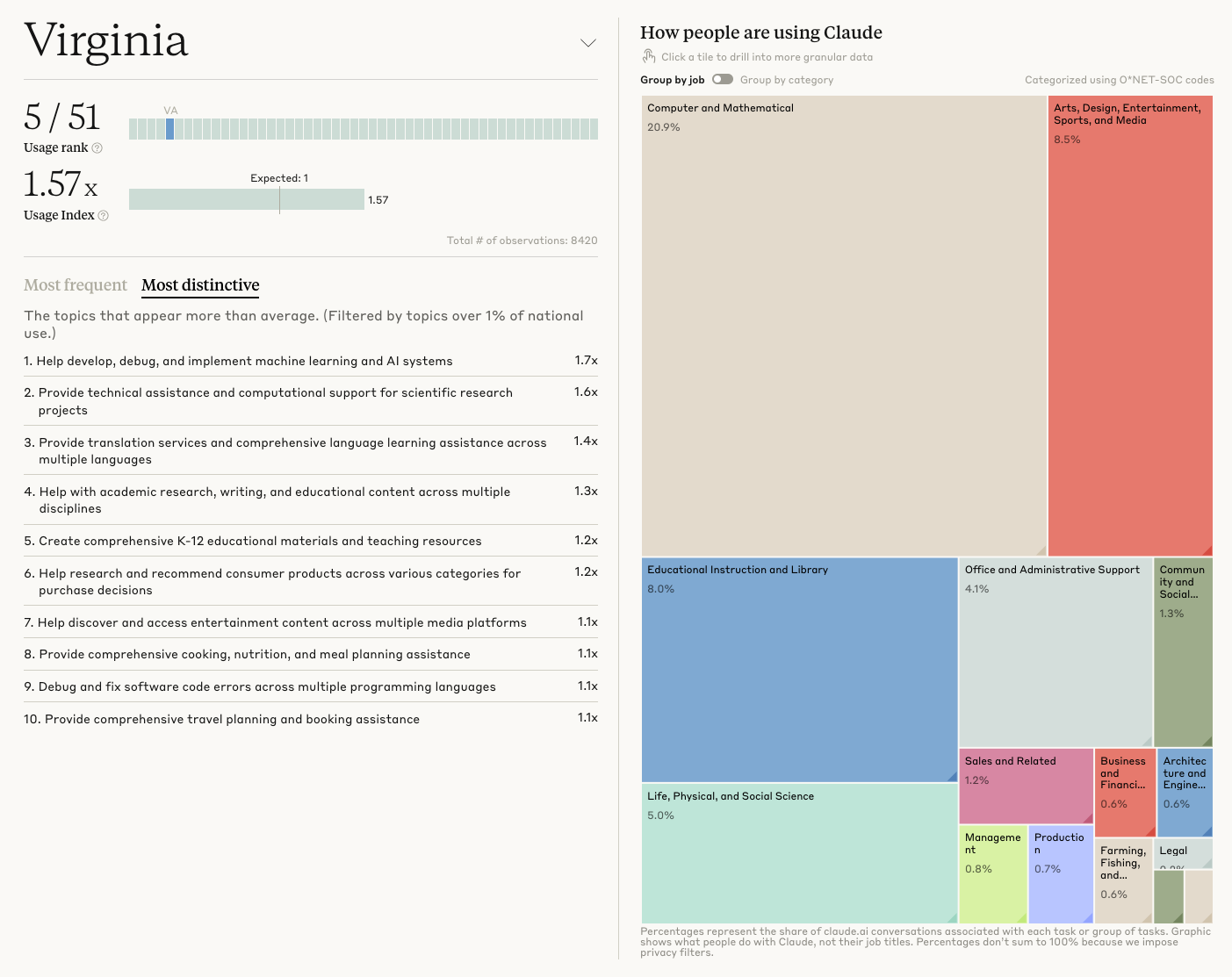 Anthropic Economic Index: Understanding AI’s effects on the economy. That link takes you to the interactive web app. See also the report.
