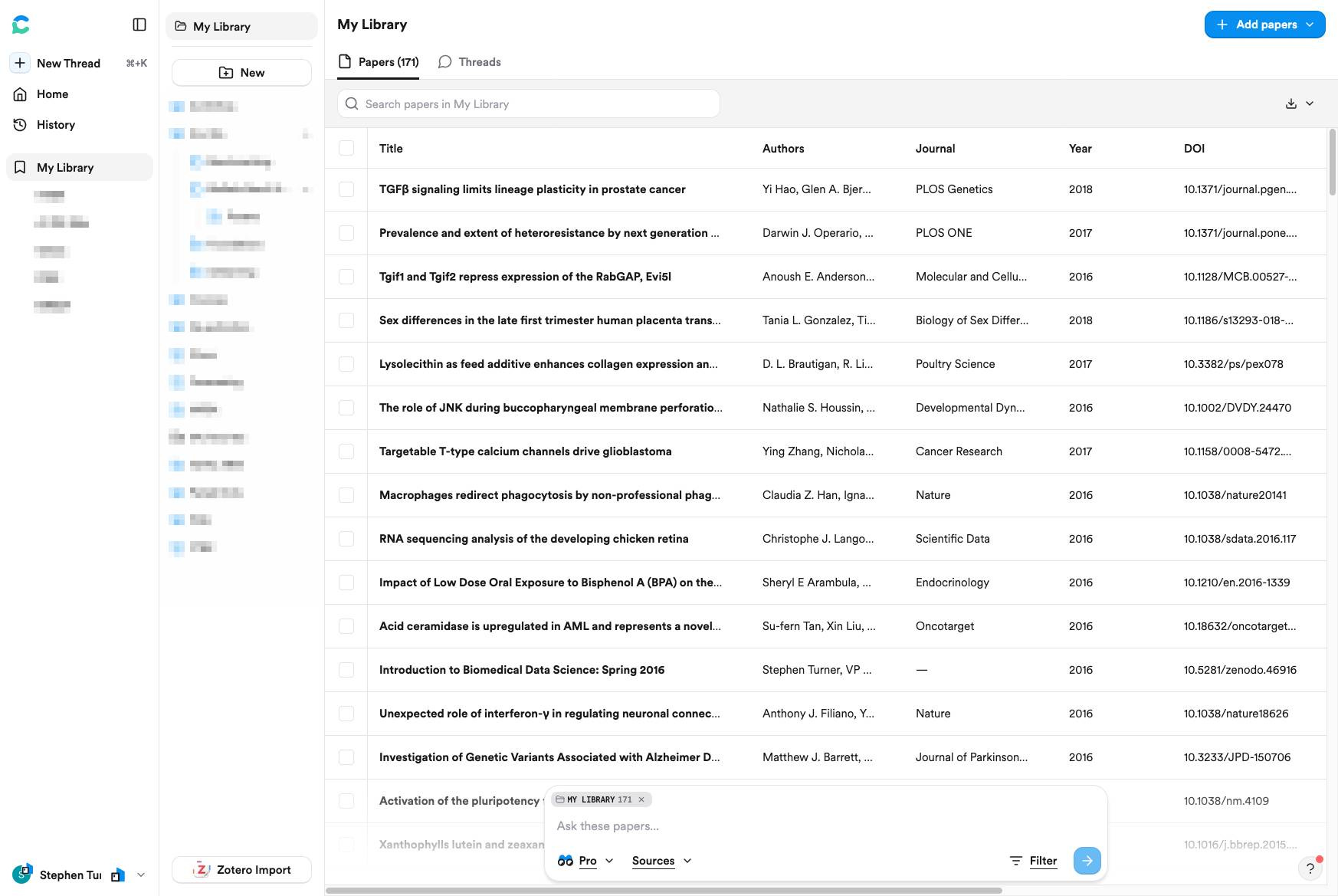 Sync your Zotero library to Consensus AI to ask questions about papers you've saved, and find and fill in gaps in your collections.