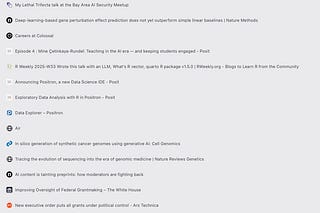AI x biosecurity, R updates (Blaze, RWeekly, R Consortium), genome engineering & conservation, AI & labor, RAG, Lost Science, AI in medicine, ggplot2…
